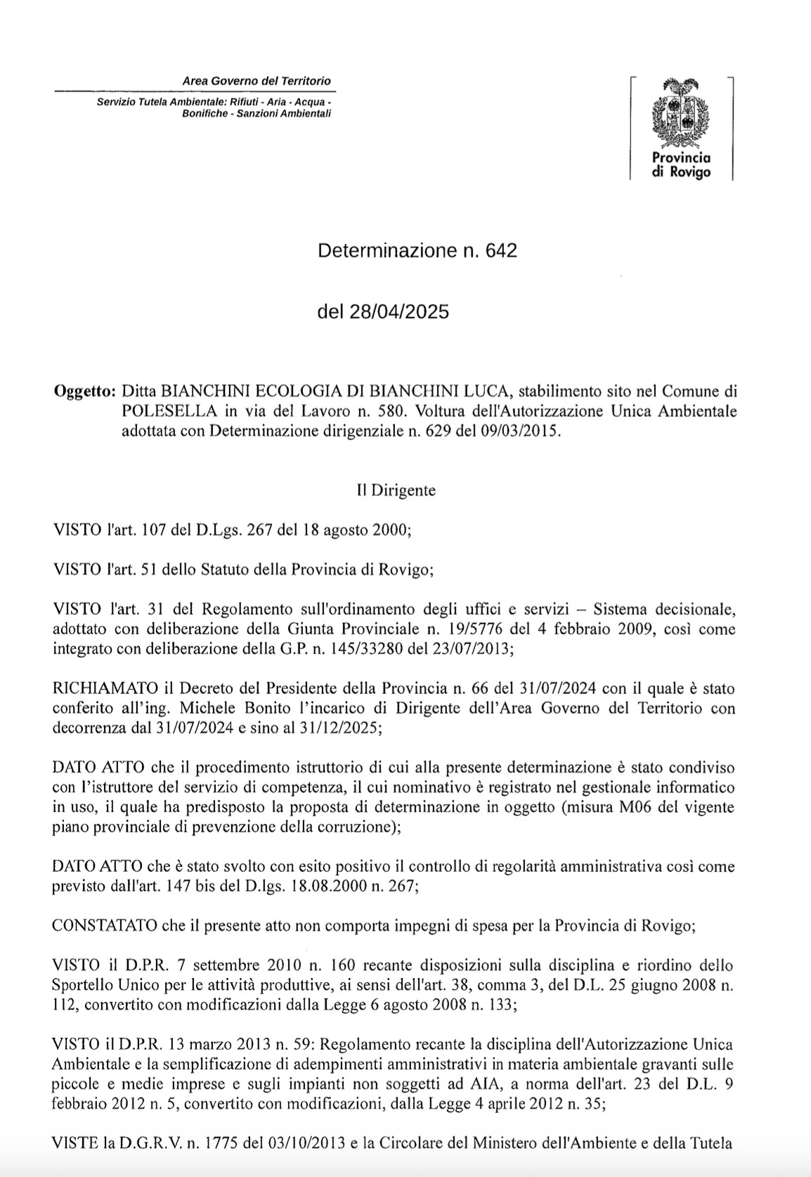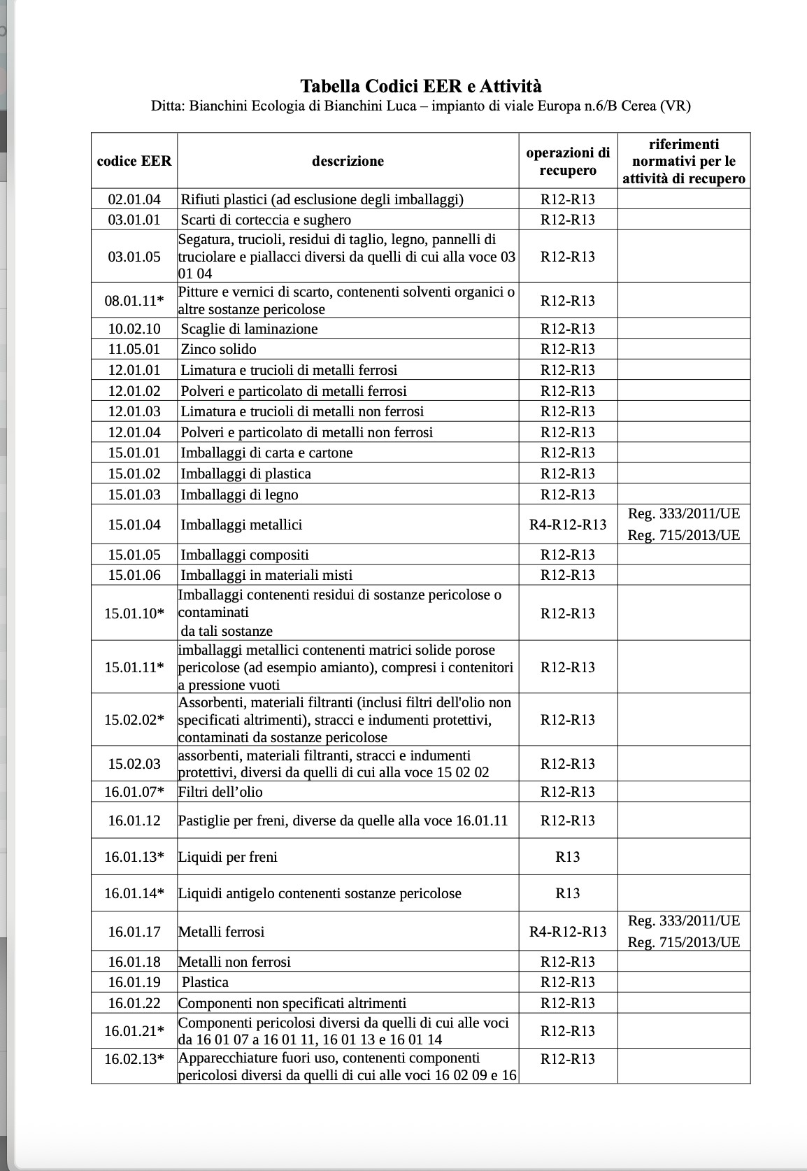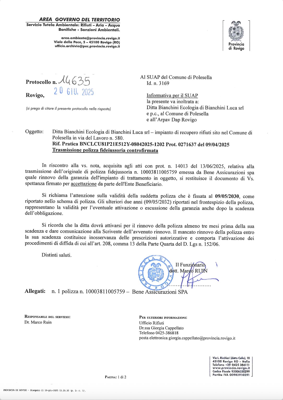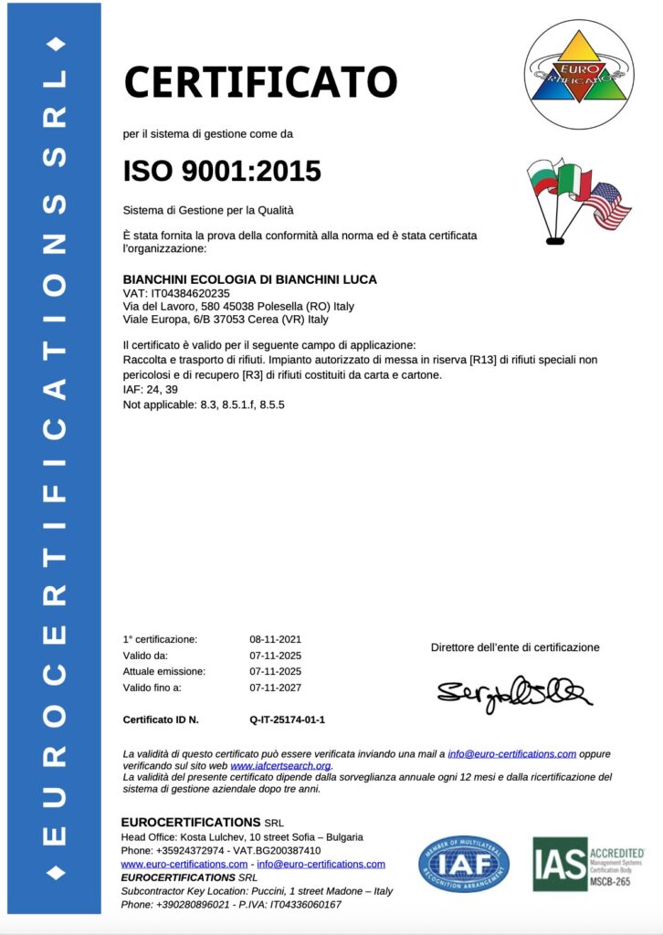 Bianchini Ecologia è autorizzata e certificata dagli enti competenti sul territorio italiano per il trasporto e lo stoccaggio di rifiuti pericolosi.
